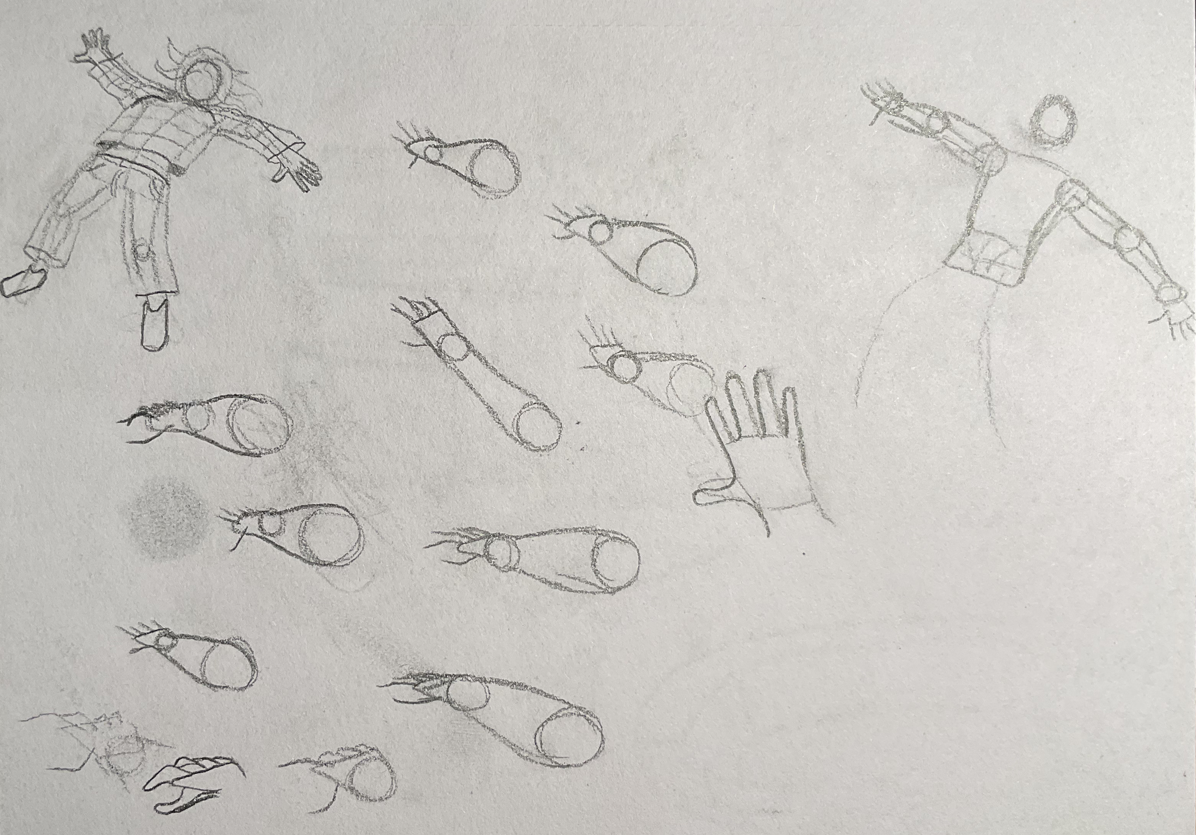I designed each feature of her separately so that they could each move independently and at different speeds, conveying the lack of controlled force in space.