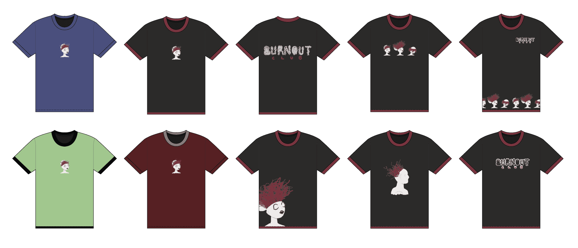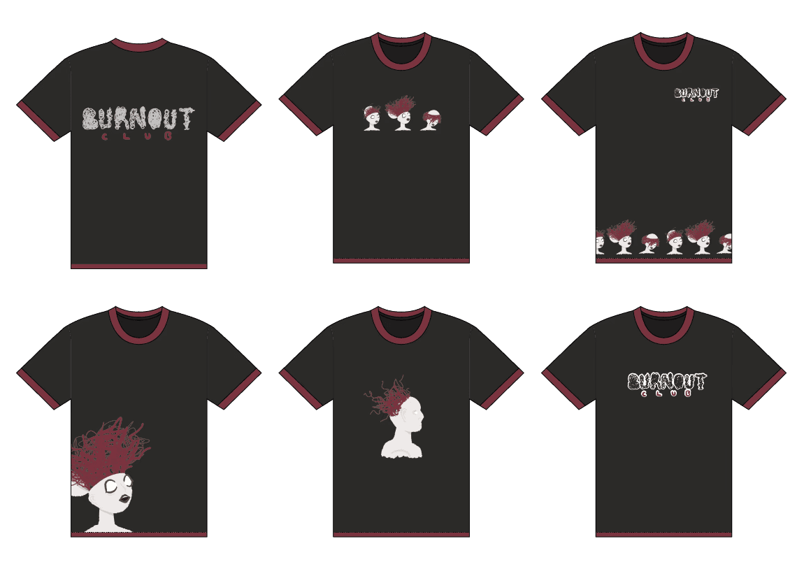 I explored this idea by creating a variety of loungewear attire with graphics inspired by the effects of burnout, with dark humour tones that confront stress and mental exhaustion.
