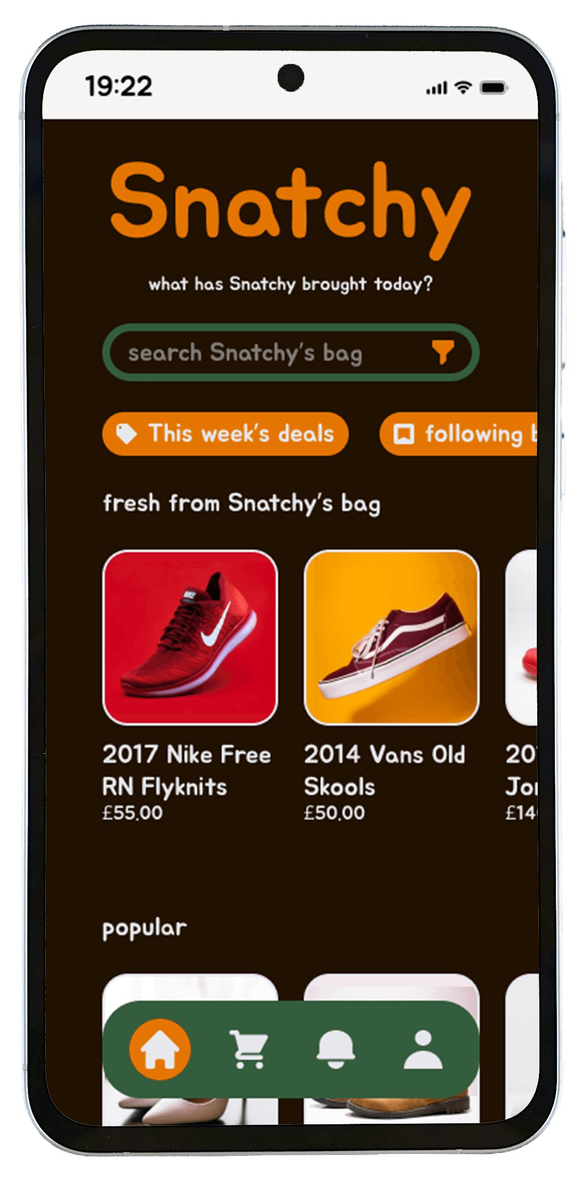 Design an app for an up and coming shoe resale service aiming to provide a friendly shoe selling experience to non sneaker-heads. This should be done by conveying its down to earth vibe and community emphasis.