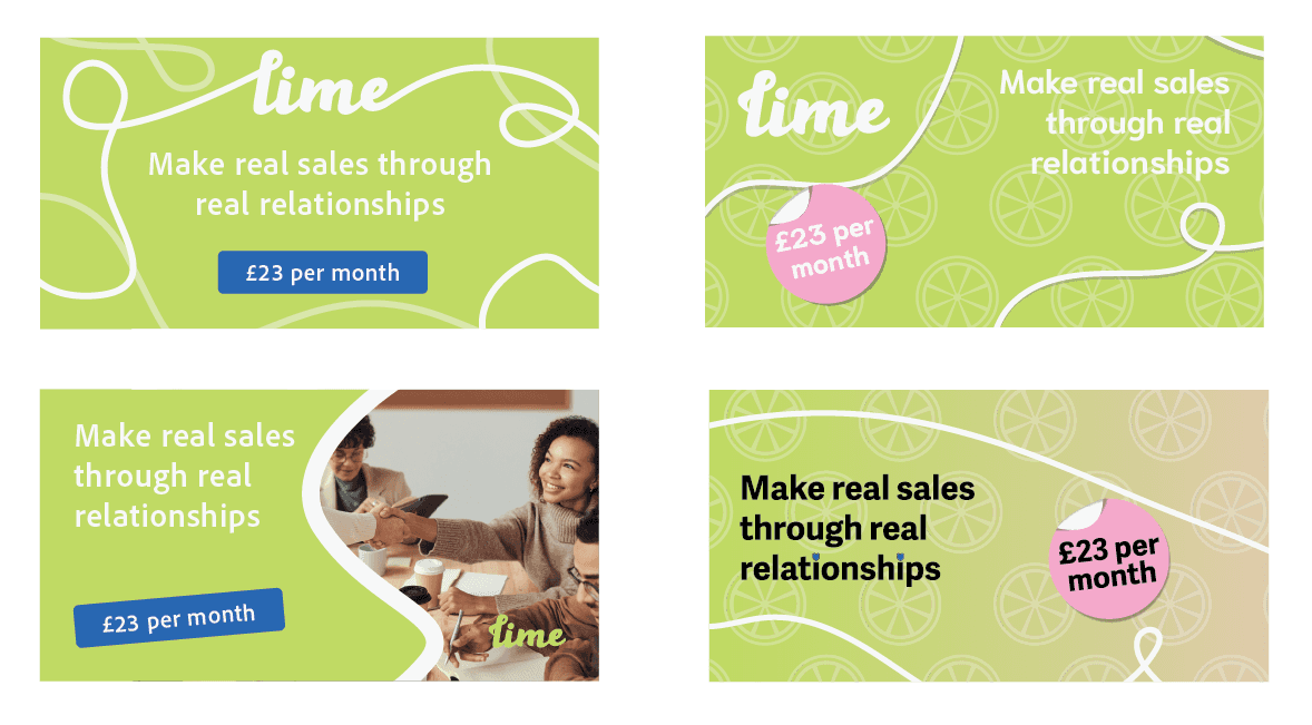 Each design features bright, appealing colour schemes, and no information hidden from consumers. This strengthens Lime's reputation as an approachable and down to earth brand.