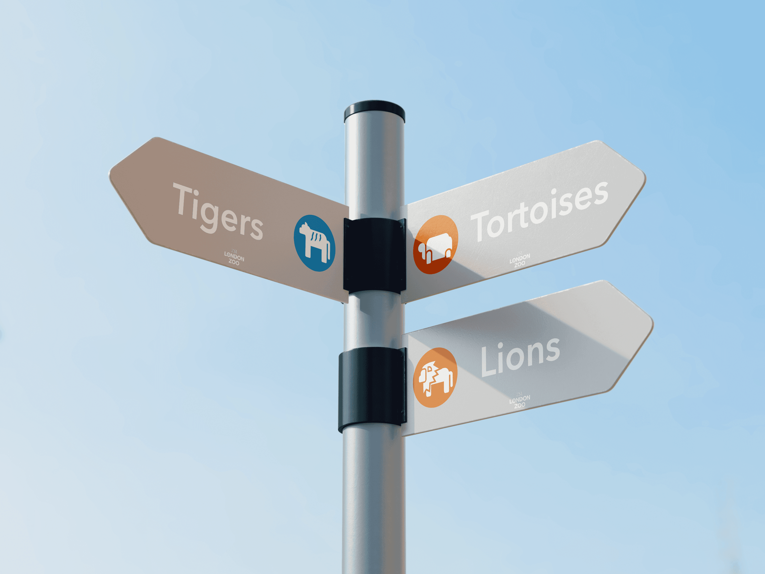 Create simple, recognisable animal icons for London Zoo using negative space and silhouette art to ensure visibility and accessibility for all visitors.
