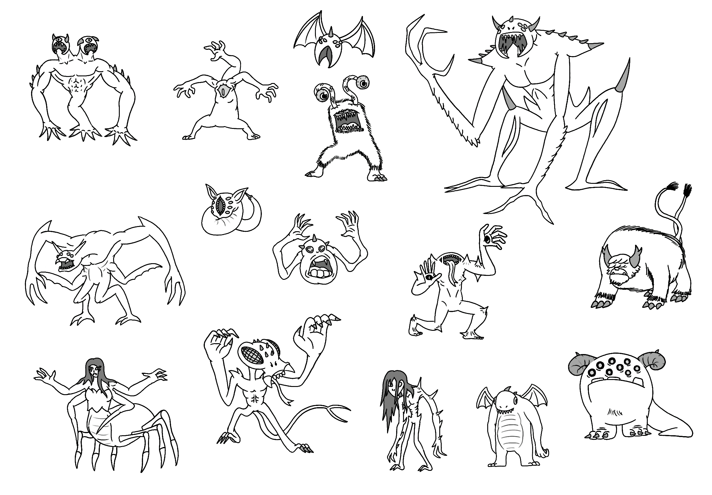refined sketches of monster design ideas